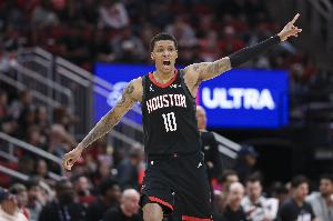 火箭球员小贾巴里·史密斯上半场不慎受伤血流满面,但他依然在处理完毕后坚持作战。